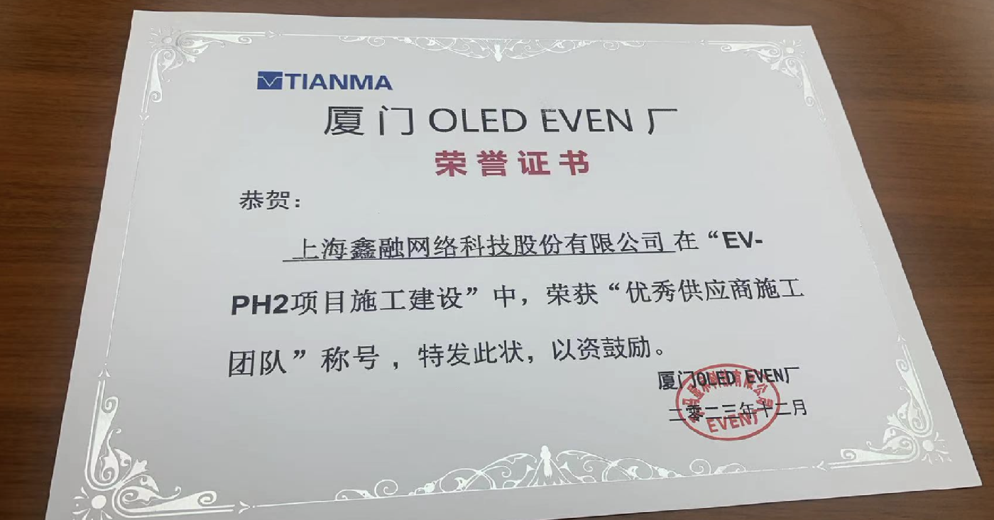近日,廈門(mén)天馬顯示科技(jì)有(yǒu)限公司召開(kāi)PH2-施工階段性總結會(huì)議,會(huì)議對第6代柔性AMOLED生(shēng)産線項目的整體(tǐ)建設情況進行(xíng)了階段性的總結,并評選了優秀供應商。鑫融網絡在“EVPH2項目施工建設”中,榮獲客戶頒布“優秀供應商施工團隊”稱号。天馬微電(diàn)子(股票(piào)代碼000050),是一家(jiā)集液晶顯示器(qì)研發、設計(jì)、生(shēng)産、銷售和(hé)服務為(wèi)一體(tǐ)的