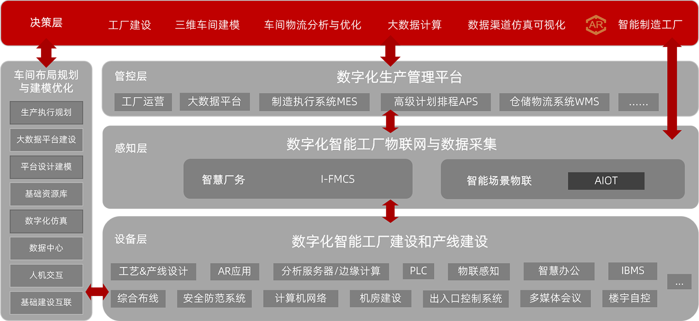 實現數(shù)據統一化,集成工業智能化管理(lǐ)系統,打破數(shù)據孤島化現狀,實現了設備可(kě)視(shì)化,打造智能工廠管控一體(tǐ)化平台和(hé)工業智能化管理(lǐ)平台。有(yǒu)效提高(gāo)工廠作(zuò)業的綜合監管能力、降低(dī)企業運營成本,實現生(shēng)産自動化、數(shù)據可(kě)視(shì)化、管理(lǐ)精細化、決策科學化和(hé)服務高(gāo)效化,可(kě)廣泛應用于生(shēng)産決策、日常監控、作(zuò)業調度、數(shù)據分析、成果彙報等多(duō)種場(chǎng)景。通(tōng)過數(shù)字化平台将制(zhì)造數(shù)據關聯起來(lái),将虛拟與現實高(gāo)度一緻的基礎上(shàng),進行(xíng)硬件接口開(kāi)發和(hé)軟件功能開(kāi)發,建立虛拟與現實的數(shù)據通(tōng)訊與互聯,搭建虛實融合的數(shù)據采集、分析、優化平台,實現基于大(dà)數(shù)據、物聯網的工藝優化和(hé)智能生(shēng)産指導。